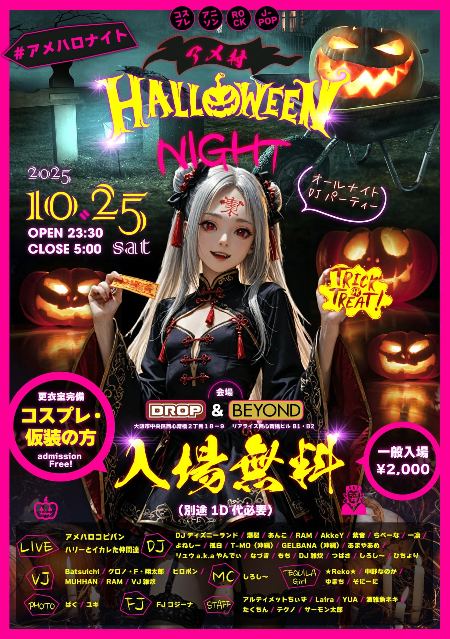 そしてなんと仮装(コスプレ)の方は入場無料!一晩中遊び倒しちゃおう!